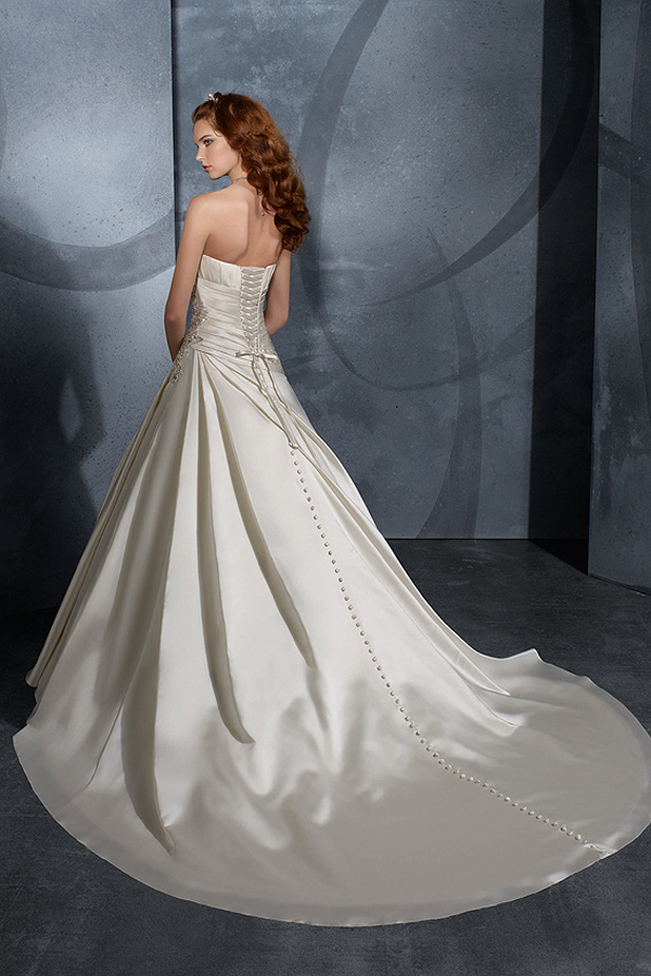 Court Train Satin Sweetheart Wedding Gown - Click Image to Close
